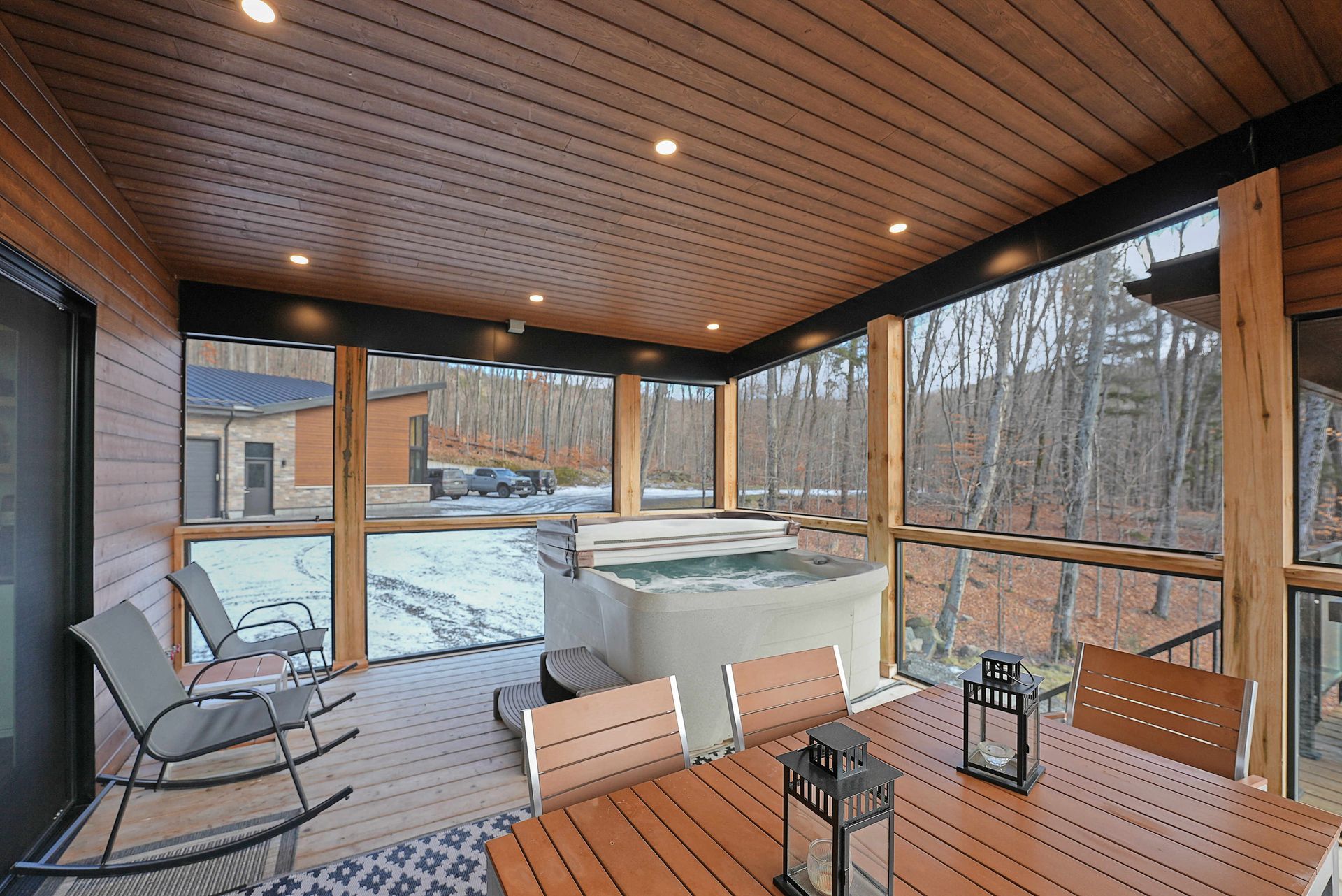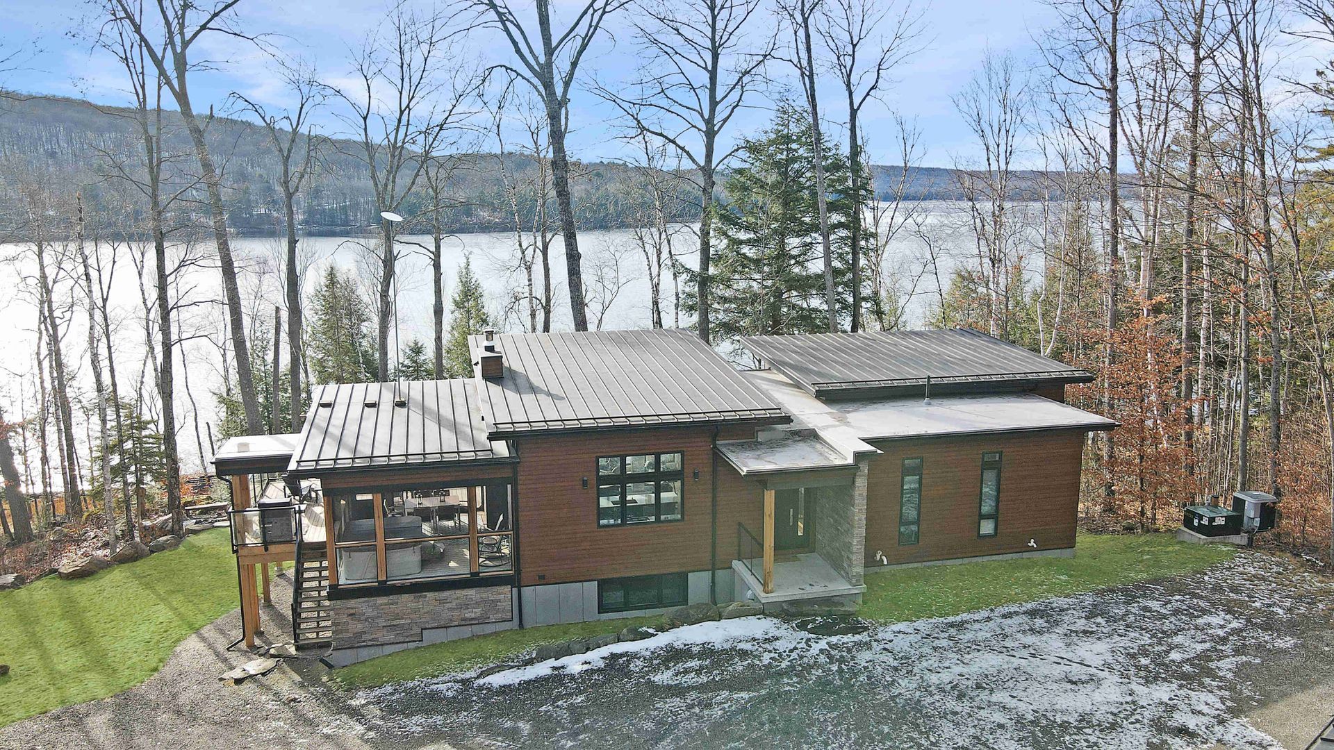 Discover luxury and meticulous craftsmanship in this spacious turn-key 5 bedroom, 3 bathroom home located on nearly 10 acres of Haliburton Lake waterfront. The heart of the main living area features a stunning wood-burning fireplace that creates an inviting focal point, perfect for cozy evenings after a day on the lake.